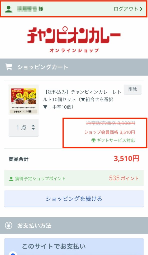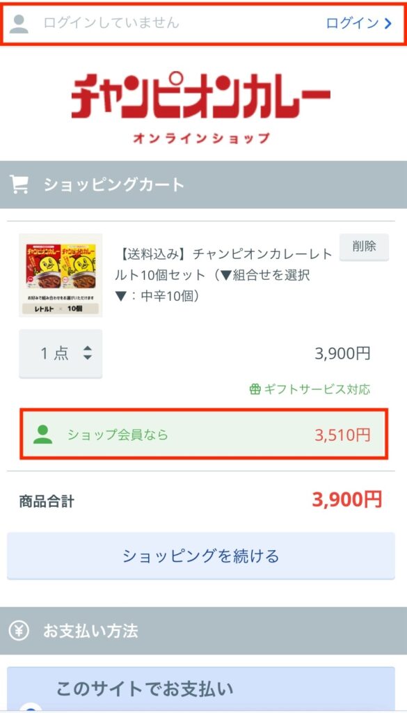Amazon Payを選ぶとログイン画面を経由せずにお会計まで進むため、必ず「先に当サイトへログイン」してからAmazon Payをお選びください。