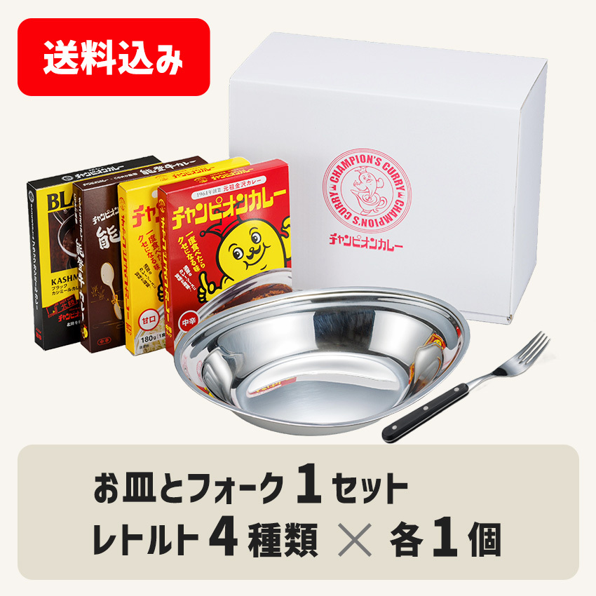 【送料込み】お皿とフォーク1セット&レトルトカレー4種各1個(常温)6,300円税込